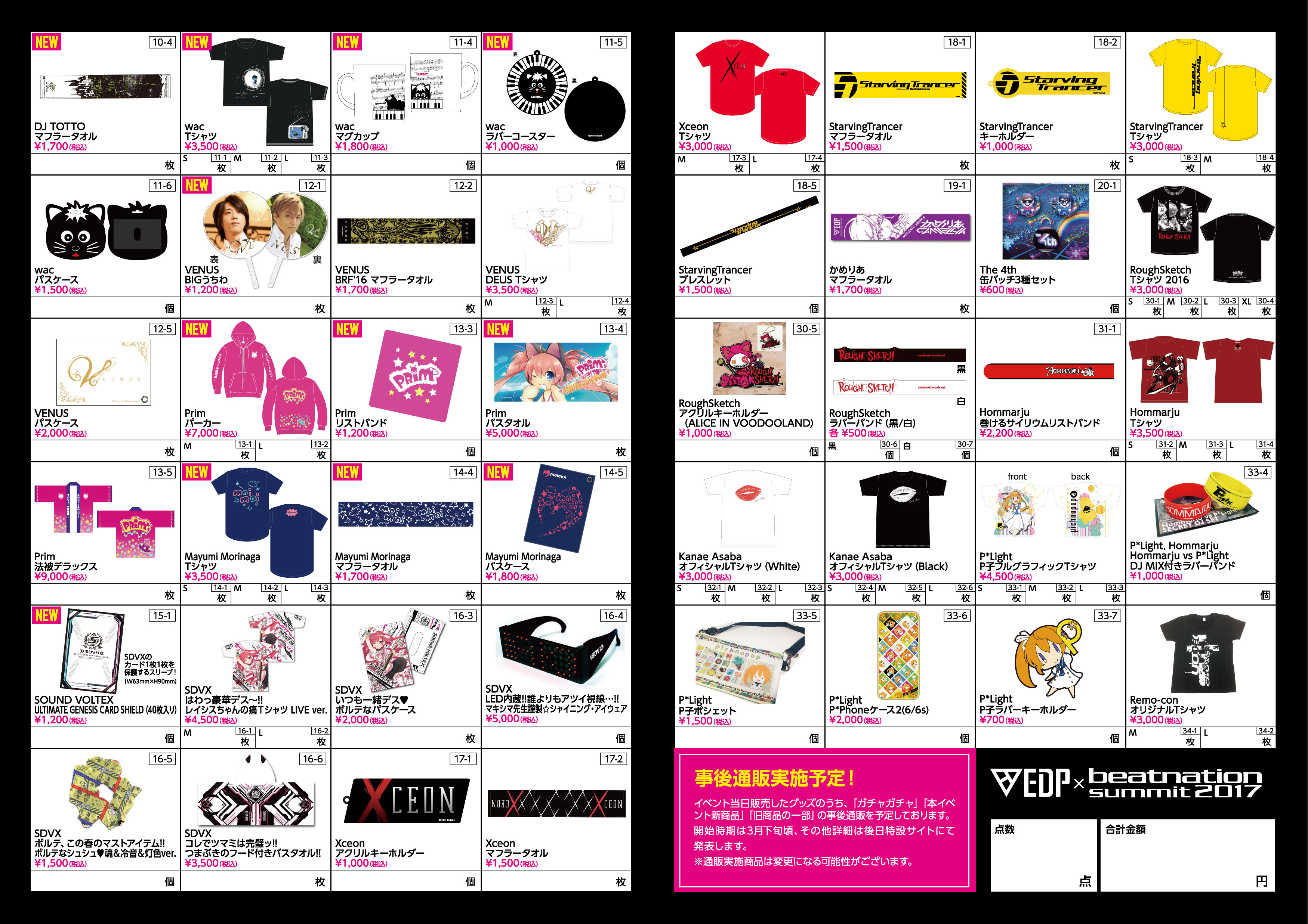 イベント当日販売したグッズのうち、「ガチャガチャ」「本イベント新商品」「旧商品の一部」の事後通販を実施。